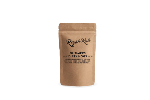 Ol'Timers Dirty Hogs is een heerlijke kruidenmix speciaal ontwikkeld voor varkensvlees. Door het gebruik van drie soorten suiker, kaneel en verschillende kruiden creëer je een smaakvolle kruidige zoetheid gevolgd door een pittige kick. "Sweet with a spicy kick, just like our women" zoals we graag zeggen.
